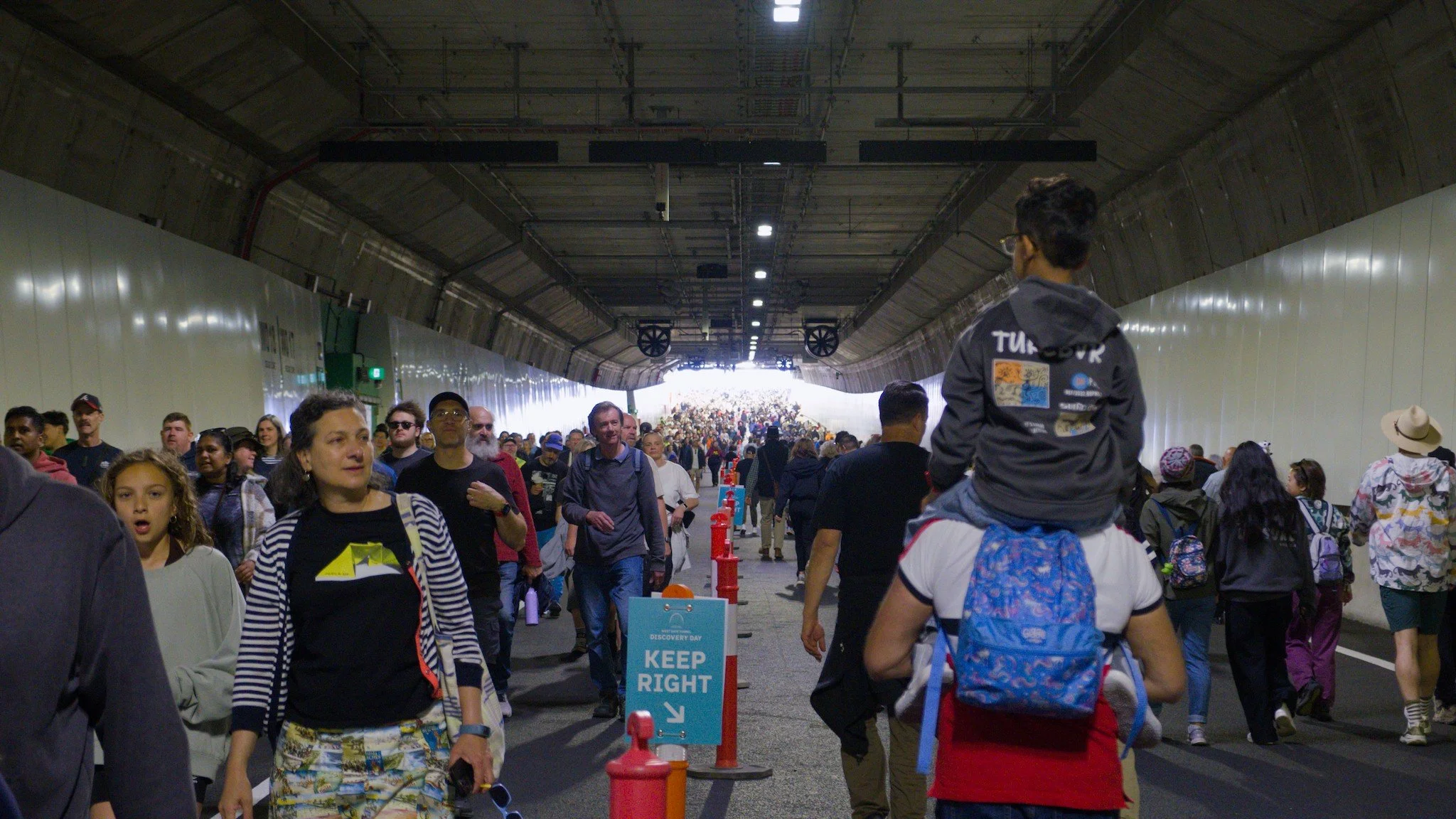 People checking out the newly-built West Gate Tunnel on Discovery Day - 2