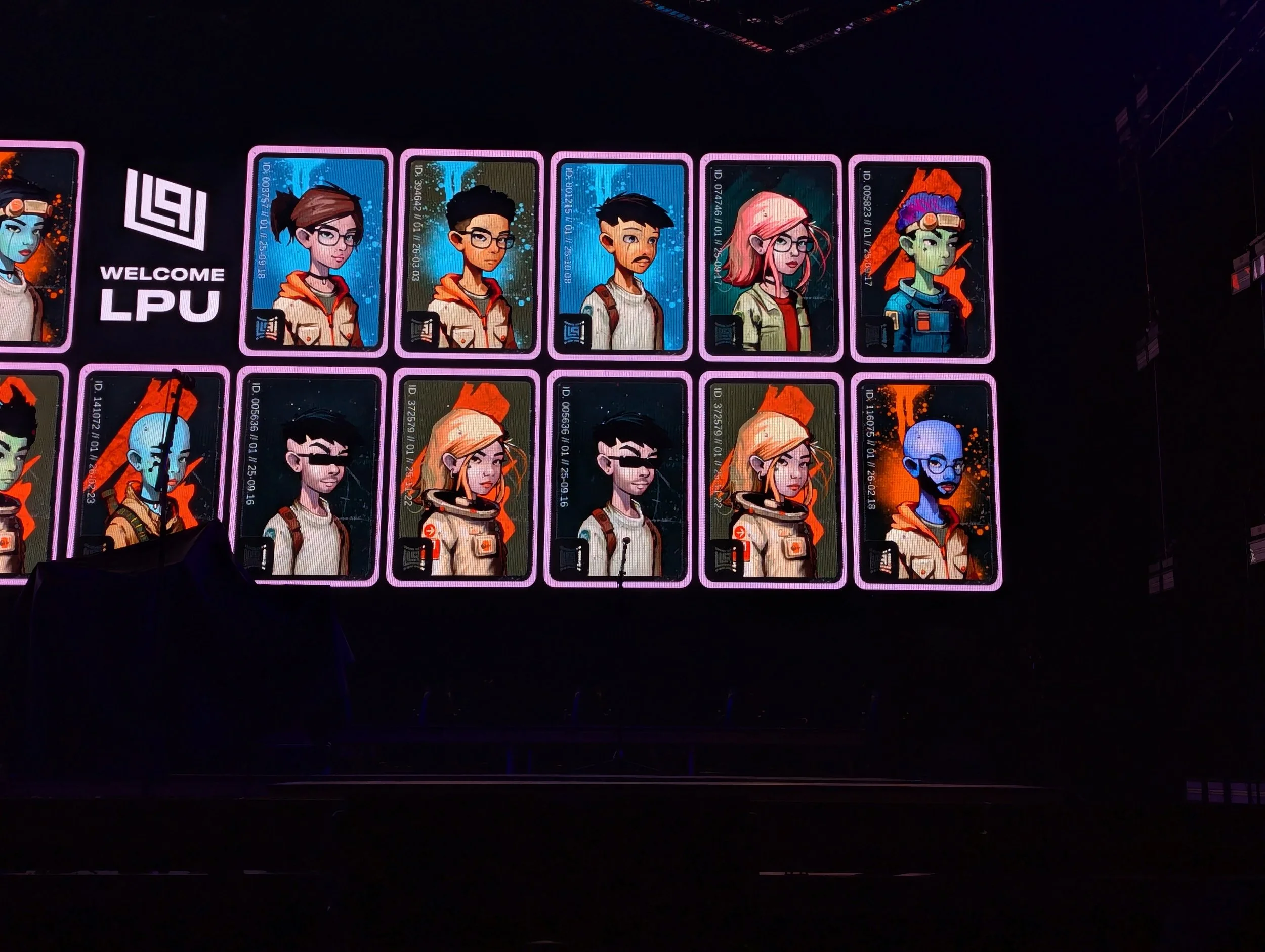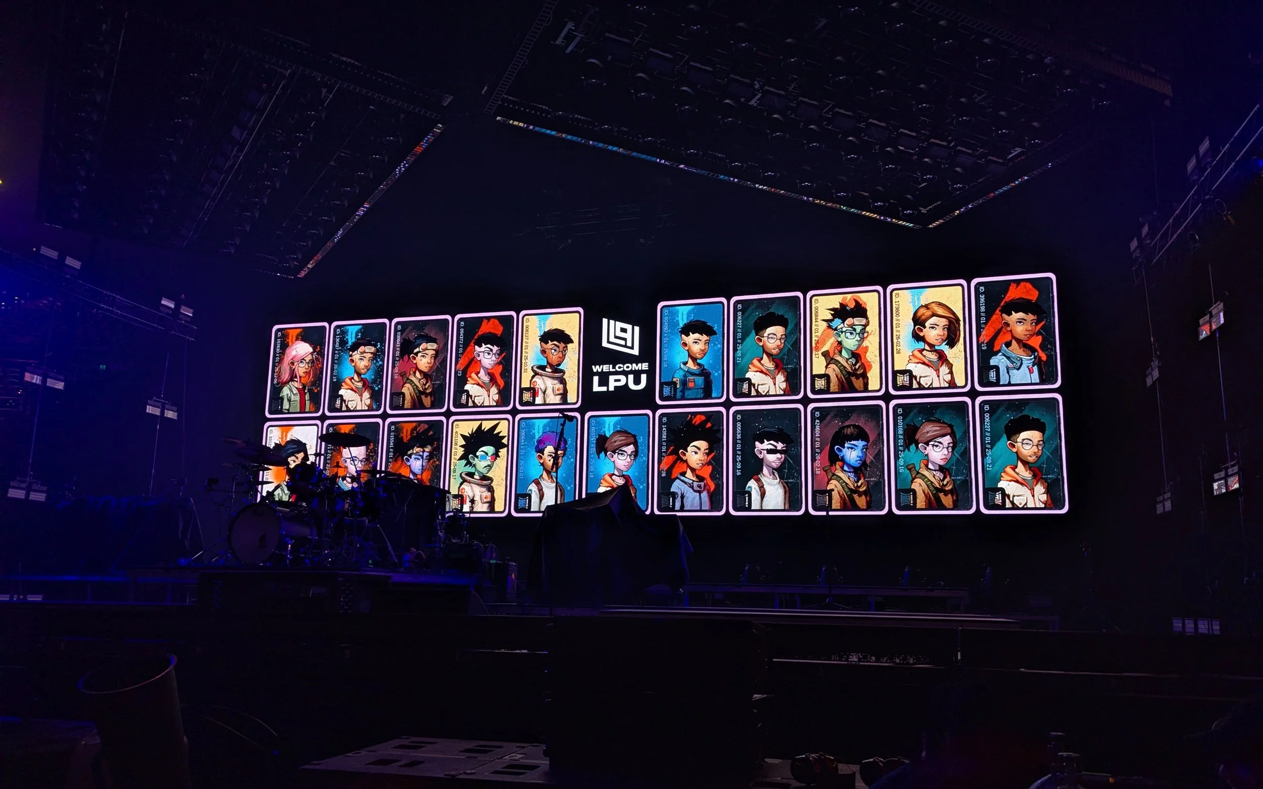 Early-entry LPU member avatars on display behind the stage