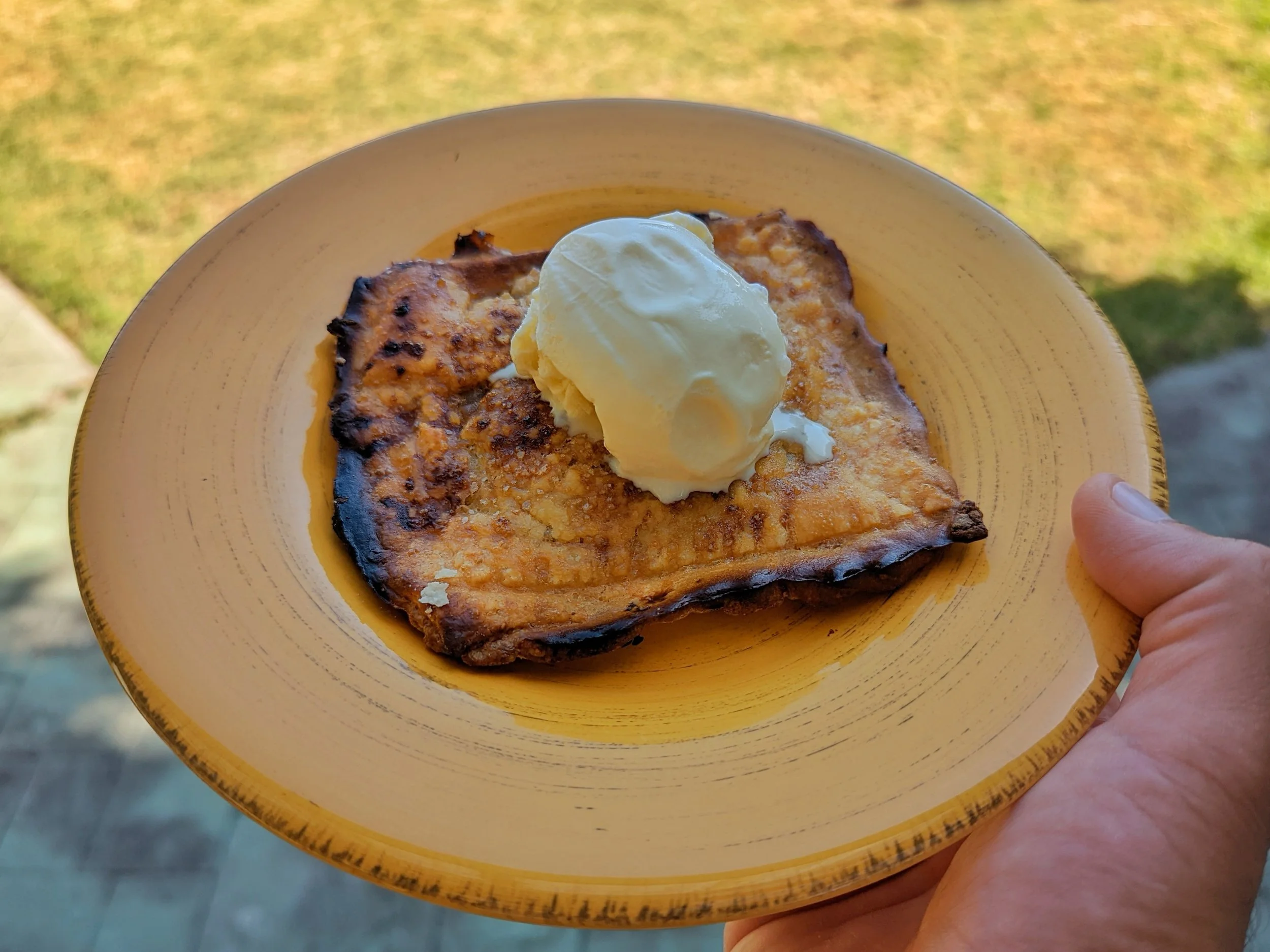 Important Sunday breakfast update (lactose free vanilla ice cream in slightly warmed pie)…